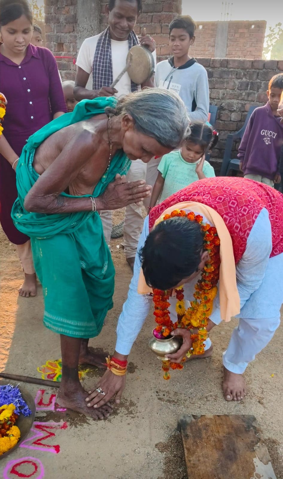 ଆଦିବାସୀ ବୃଦ୍ଧା ଶ୍ରୀମତୀ ତୁଳସୀ ବରିହାଙ୍କ ପାଦ ଧୋଇଲେ ସାଂସଦ ଶ୍ରୀ ପ୍ରଦୀପ ପୁରୋହିତ ।