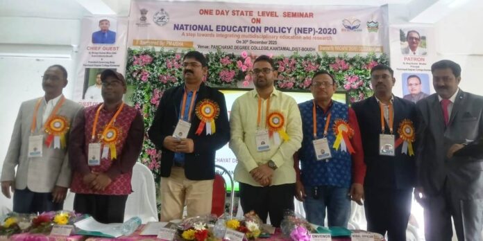 ବାଉଁଶୁଣୀ(ଉମାକାନ୍ତ ମହାକୁଳ)-ବୌଦ୍ଧ ଜିଲ୍ଲା କଣ୍ଟାମାଳ ପଞ୍ଚାୟତ ସ୍ନାତକ ମହାବିଦ୍ୟାଳୟରେ ମଙ୍ଗଳବାର ପିଏମ -ଉଷା ସହାୟତାରେ ଓ କଣ୍ଟାମାଳ ପଞ୍ଚାୟତ ସ୍ନାତକ ମହାବିଦ୍ୟାଳୟ ଦ୍ଵାରା ପରିଚାଳିତ ଏକ ଦିବସୀୟ ରାଜ୍ୟସ୍ତରୀୟ ସମ୍ପାନ ଜାତୀୟ ଶିକ୍ଷା ନୀତି – ୨୦୨୦ ଶୀର୍ଷକ ଆଲୋଚନା ଚକ୍ର ଅନୁଷ୍ଠିତ ହୋଇଯାଇଛି। କଲେଜ ଅଧ୍ୟକ୍ଷ ଅନୋଜ କୁମାର ଭୁକ୍ତାଙ୍କ ଅଧ୍ୟକ୍ଷତାରେ ଅନୁଷ୍ଠିତ ଏହି ରାଜ୍ୟସ୍ତରୀୟ ସମ୍ପାନର ଉଦଘାଟନୀ ସମାରୋହରେ ମୁଖ୍ଯ ଅତିଥି ଭାବରେ ଉପଜିଲ୍ଲାପାଳ ବିନୟ କୁମାର ଭୋଇ ଓ ମୁଖ୍ୟବକ୍ତା ପ୍ରଫେସର ଉମାଚରଣ ପତି ଏବଂ ସମ୍ମାନୀତ ଅତିଥି ଭାବରେ ସମାଜସେବୀ ଓମପ୍ରକାଶ ମିଶ୍ର, ସହପ୍ରଫେସର ଅଜିତ କୁମାର ପ୍ରଧାନ, ନୋଡାଲ ଅଫିସର ଅଧ୍ୟାପକ ପୌଲସ୍ତି ପ୍ରଧାନ, ସଂଯୋଜକ ଅଧ୍ୟାପକ ରବୀନ୍ଦ୍ର କୁମାର ପ୍ରଧାନ, ସଂଯୋଜିକା ଡ.ରିଙ୍କି ସେଠ କିନୋଟ ବକ୍ତା ଭାବେ ଯୋଗଦେଇ ଜାତୀୟ ଶିକ୍ଷାନୀତି -୨୦୨୦ ଉପରେ ଆଲୋଚନା କରିଥିଲେ। ଅଧ୍ୟାପକ ଦୀପକ କୁମାର ମେହେର ଅତିଥି ପରିଚୟ ଓ ଅଧ୍ୟାପକ ବସନ୍ତ ଖଟୁଆ ସଭା ପରିଚାଳନା କରିଥିଲେ।