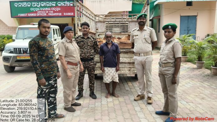 ଖଇର କାଠ ଚାଲାଣ ଅଭିଯୋଗରେ ଗାଇସିଲାଟ ଥାନା ଅନ୍ତର୍ଗତ କନ୍ଦୁମୁଣ୍ଡା ଗାଁ ର ଭେଲମଣି ସାହୁକୁ ଗିରଫ କରିଥିଲେ । ପଦ୍ମପୁର ରେଞ୍ଜ କେଶ ନମ୍ବର ୨୮/୨୦୨୫ ଆଧାରରେ ଅଭିଯୁକ୍ତକୁ କୋର୍ଟ ଚାଲାଣ କରାଯାଇଥିବା ପଦ୍ମପୁର ରେଞ୍ଜର ରଣଜିତ ସିଂ ବାବୁ ସୂଚନା ଦେଇଛନ୍ତି । ଏହି ଚଢାଉରେ ଅନ୍ୟ ମାନଙ୍କ ମଧ୍ୟରେ ଫରେଷ୍ଟର ଝରଣା ସାହୁ,ଫରେଷ୍ଟ ଗାର୍ଡ ପୃଥ୍ୱିରାଜ ଭୋଇ,ସ୍କ୍ୱାର୍ଡ ମନ ଥେଠୁଆ,ସୁଧାଂଶୁ ଭଏଁସା,ତରଣୀ ଦାଶ,ମନୋଜ ବଡଗୁଛିଆ,ଯଶୋବନ୍ତ ସାହୁ,ନିରାକାର ନାଏକ,ଗଣେଶ ସାହୁ ପ୍ରମୁଖ ସାମିଲ ଥିଲେ ।