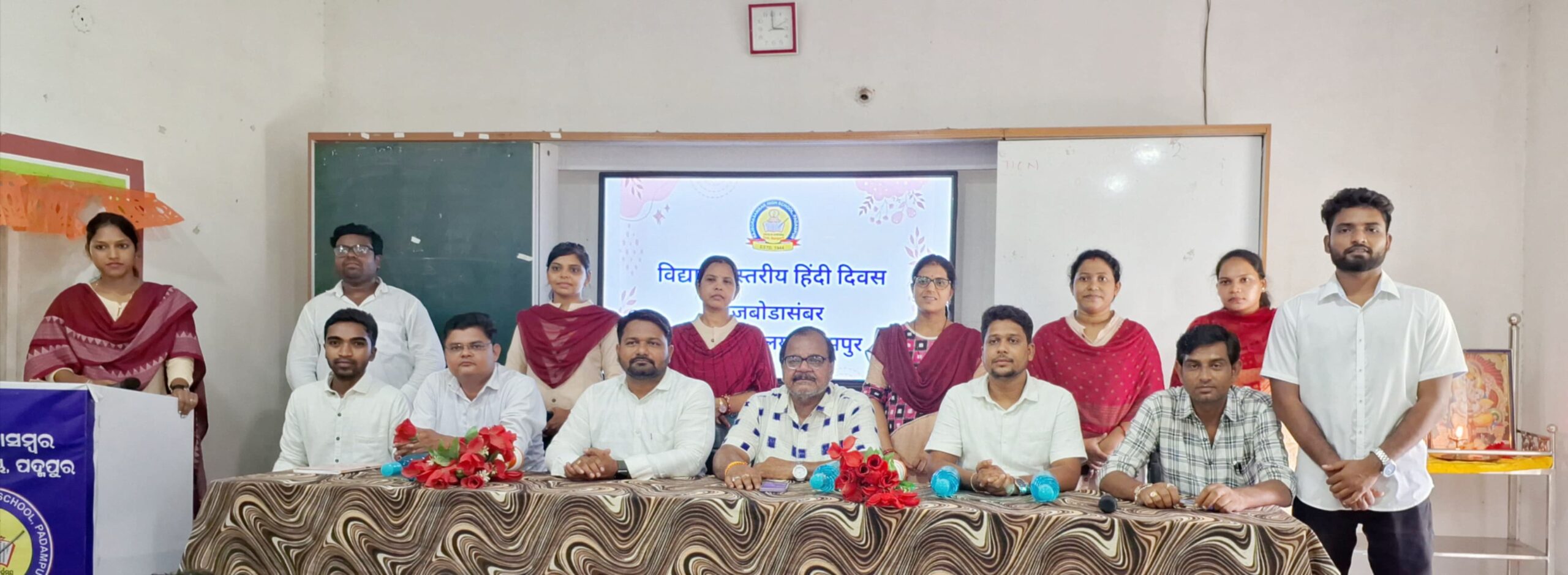 ପଦ୍ମପୁର-ରାଜବୋଡାସମ୍ବର୍ ଉଚ୍ଚ ବିଦ୍ୟାଳୟ ପଦ୍ମପୁର ଠାରେ ବିଦ୍ୟାଳୟର ପ୍ରଧାନ ଶିକ୍ଷକ ଶ୍ରୀଯୁକ୍ତ ନିରାଲମ୍ବ ପ୍ରସାଦ ପଟେଲଙ୍କ ସଭାପତିତ୍ବରେ ବିଦ୍ୟାଳୟ ସ୍ତରୀୟ ହିନ୍ଦୀ ଦିବସ ପାଳିତ ହୋଇଯାଇଛି। ସର୍ବପ୍ରଥମେ ପ୍ରଦୀପ ପ୍ରଜ୍ୱଳନ ପୂର୍ବକ ଶ୍ରୀ ଗଣେଶ ଓ ମାତା ସରସ୍ୱତୀ ଙ୍କ ଫଟୋଚିତ୍ର ରେ ପୁଷ୍ପମାଲ୍ୟ ଅର୍ପଣ କରି ସଭା କାର୍ଯ୍ୟ ଆରମ୍ଭ କରାଯାଇଥିଲା। ବିଦ୍ୟାଳୟ ର ଶିକ୍ଷୟିତ୍ରୀ ସୁଶ୍ରୀ ପ୍ରୀତିରଶ୍ମି ସେଠ୍ ସ୍ବାଗତ ଅଭିଭାଷଣ ପ୍ରଦାନ କରିଥିଲେ। ବିଦ୍ୟାଳୟ ର ହିନ୍ଦୀ ଶିକ୍ଷକ ଶ୍ରୀମାନ ଚନ୍ଦନ ନାୟକ ହିନ୍ଦୀ ଦିବସ ର ମହତ୍ତ୍ଵପୂର୍ଣ୍ଣ ଭୂମିକା ସମ୍ପର୍କ ରେ ବର୍ଣ୍ଣନା କରି ମଞ୍ଚ ପରିଚାଳନା କରିଥିଲେ।