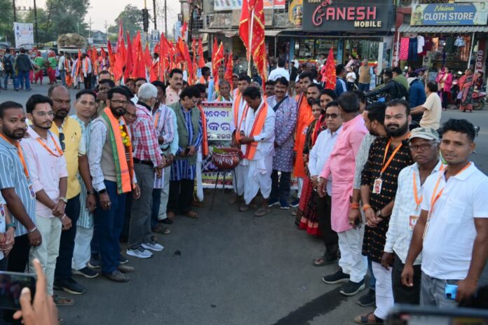 Around 18 local cultural groups, including traditional gana baja, ghoodka, etc., along with Santali dance from Kinajhar, Bagh dance from Berhampur, Veer Badya Ghoomura from Dharmagarh, Samar Kala from Puri and folk dance traditions from outside states like Bilashpur of Chhattisgarh also took part in this procession. A total of more than 25 groups and more than 400 artists participated in this procession. On the other hand, various departments and schools displayed various public awareness and national valor, such as forest protection, cyber awareness, Swachh Bharat, Shriram Janmabhoomi, traditional Jog Kala, and many beautiful jhankis showing the science skills of traditional Jog Kala. This procession, which started from the local Ashoka ground and lit the torch of unity with the worship, has also been seen in the entire city, especially the ancient tradition of Jhankar of Bodasambar.